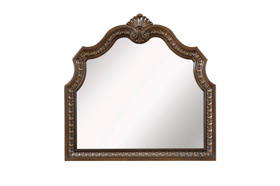 Create a bedroom that captures the essence of classic sophistication with this distinguished furniture collection. Constructed from premium ash and zebra-wood veneers finished in a luxurious dark brown, the ensemble comprises a commanding sleigh bed, matching nightstand, dresser, and chest. The bed showcases a sumptuous tufted faux leather headboard adorned with detailed carved accents, while the coordinating pieces feature expertly crafted dovetail joinery, smooth ball-bearing drawer glides, and cedar-lined lower drawers for superior storage protection. Decorative drop hardware and an elegantly arched mirror accent the dresser, delivering a refined aesthetic that seamlessly merges enduring design principles with intelligent functionality.