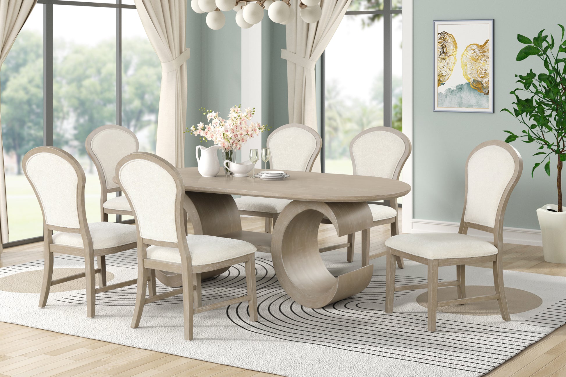 - Elegant Sculptural Design: A striking curved base anchors this collection, blending bold artistry with everyday function for a statement-making piece that elevates the style and presence of your dining room.