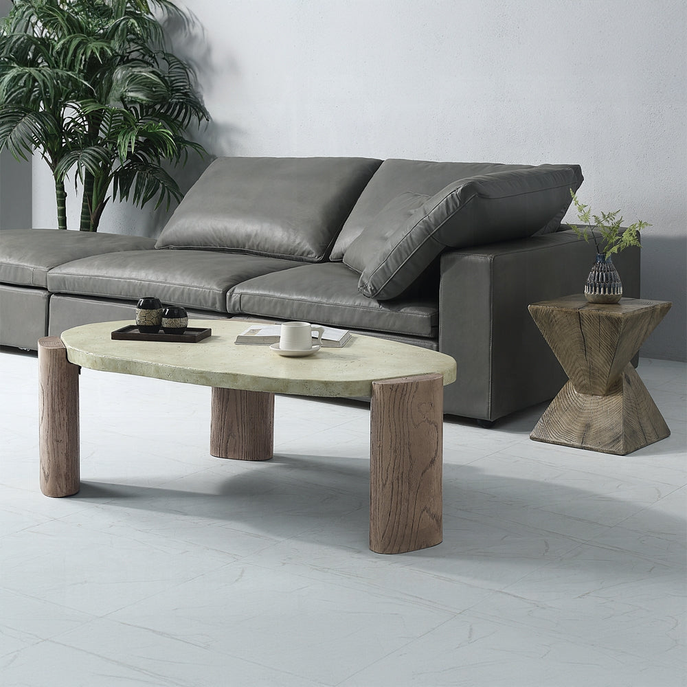 Introduce elementos naturales en tus espacios interiores con la mesa de centro Jacinda. Fabricada con cemento resistente, esta mesa ofrece una estética elegante y elegante. Sus superficies texturizadas, que incluyen una mesa lisa y patas de madera sintética, añaden atractivo visual, mientras que su forma oblonga ofrece un toque moderno. Con un tablero espacioso para exhibir piezas decorativas, esta mesa con acabado en roble y gris desgastado es una adición única a su espacio vital. Experimente la fusión de materiales sostenibles y diseño contemporáneo con esta elegante mesa de centro.
