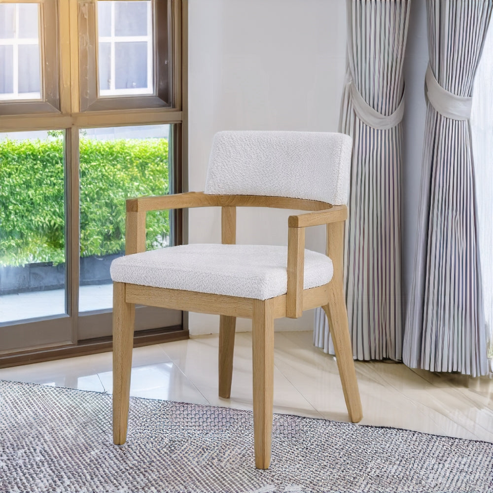 Indulge in the perfect blend of minimalism and coziness with our expertly crafted dining set. Inspired by Scandinavian design, this collection beckons you to savor each meal with elegance and ease. The natural wooden finish of the circular table and matching chairs adds a touch of natural charm to your dining area, creating a peaceful atmosphere for intimate dinners and meaningful discussions. The plush, white cushioned seats offer a welcoming softness, ideal for extended gatherings beneath the warm ambiance of your dining room lighting. This set isn't solely about dining; it's about creating moments ~ masterfully designed to foster connections and create lasting memories in the heart of your home.