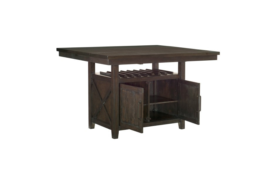 The Oxton Collection enhances your rustic home decor with a spacious rectangular counter-height table ideal for dining and gatherings. Its sturdy base includes practical storage to neatly tuck away your tabletop essentials. The set’s 24-inch chairs, crafted with wood frames and contoured backs, showcase nailhead detailing and plush fabric seats, harmonizing seamlessly with the collection’s rustic charm.