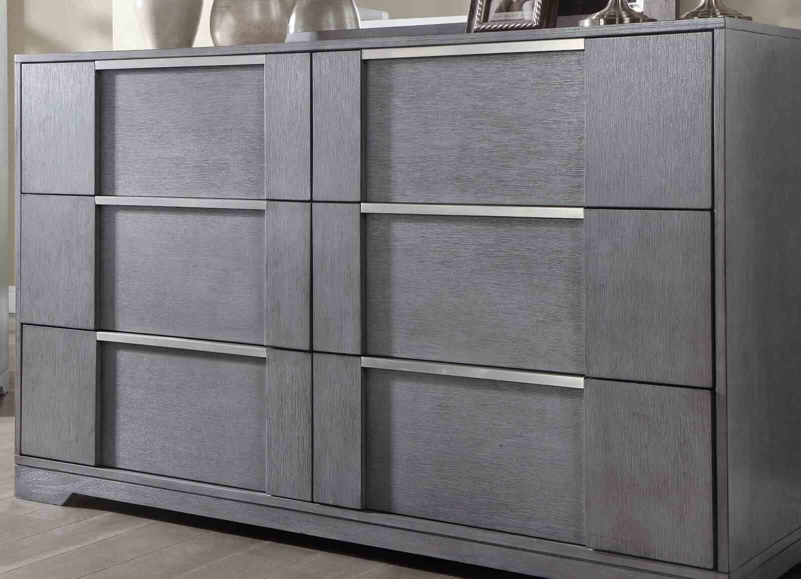 This bedroom set blends timeless elegance with modern style. The headboard features integrated LED lighting, ideal for reading or creating a warm, ambient glow. At the foot of the bed, two full-extension drawers offer convenient storage for linens and pillows, accented by recessed nickel finger pulls that enhance the sophisticated look. Coordinating case pieces showcase matching hardware, generous storage solutions, and felt-lined top drawers, delivering a polished and functional design.