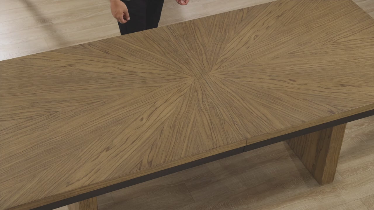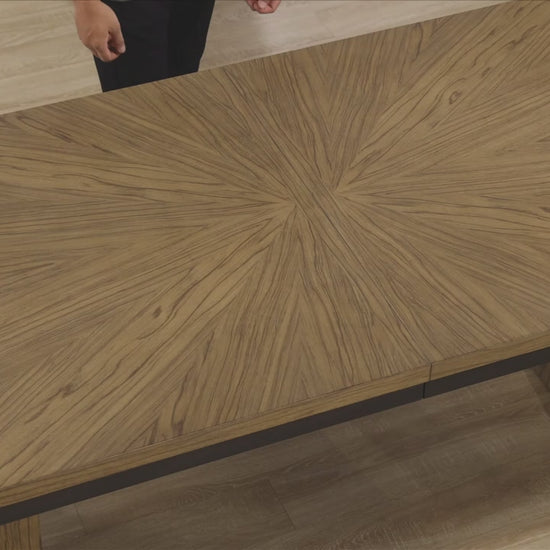 El tablero de madera de limba del juego de comedor Roatan de 5 piezas de 80 a 96 pulgadas presenta una incrustación de chapa de diamante a juego al revés que crea un lienzo impresionante para cualquier mesa. Con su suave deslizamiento con rodamientos de bolas, la mesa puede expandirse sin esfuerzo de 80 a 96 pulgadas, sentando cómodamente hasta diez invitados. La hoja se puede guardar cómodamente dentro del mecanismo de la mesa, ahorrando así un valioso espacio de almacenamiento.