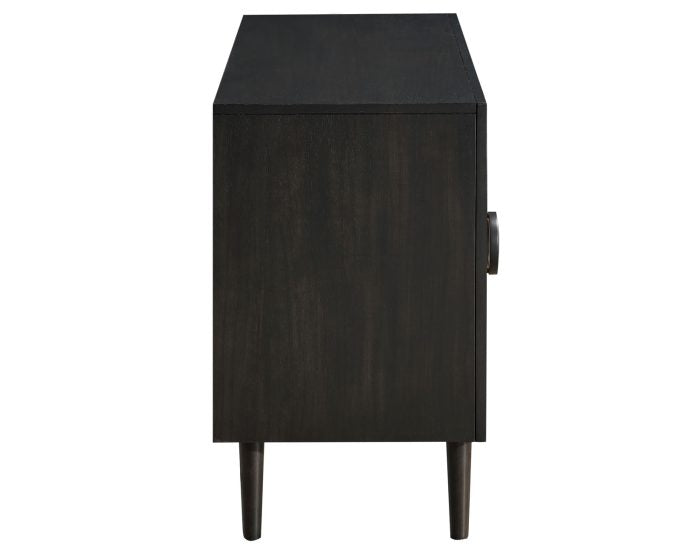 Agregue elementos estéticos y prácticos a su comedor con Roatan Server. Su diseño moderno y elegante, completo con un acabado en negro y caramelo y un impresionante patrón de chapa de limba, rezuma elegancia. Las bisagras europeas ocultas y el borde biselado añaden un toque de sofisticación, mientras que los estantes ajustables brindan un almacenamiento conveniente para todas sus necesidades de comedor. Organice su vajilla, cristalería y platos para servir sin esfuerzo con este elegante servidor.