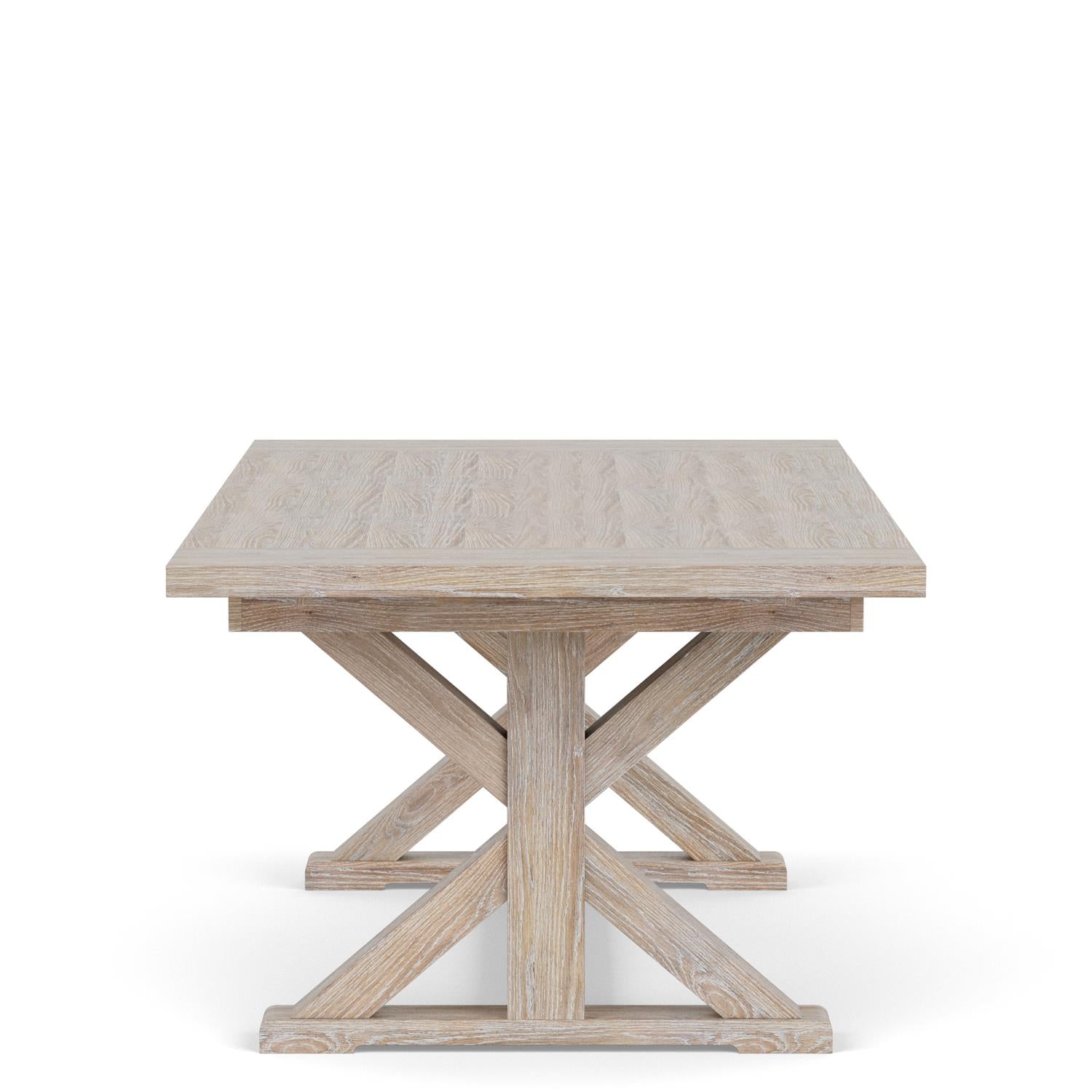- The natural finish on the table compliments the white and natural materials in the collection