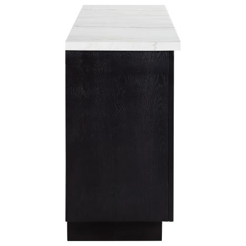 - Elegante servidor de comedor con lujosa tapa de mármol blanco.