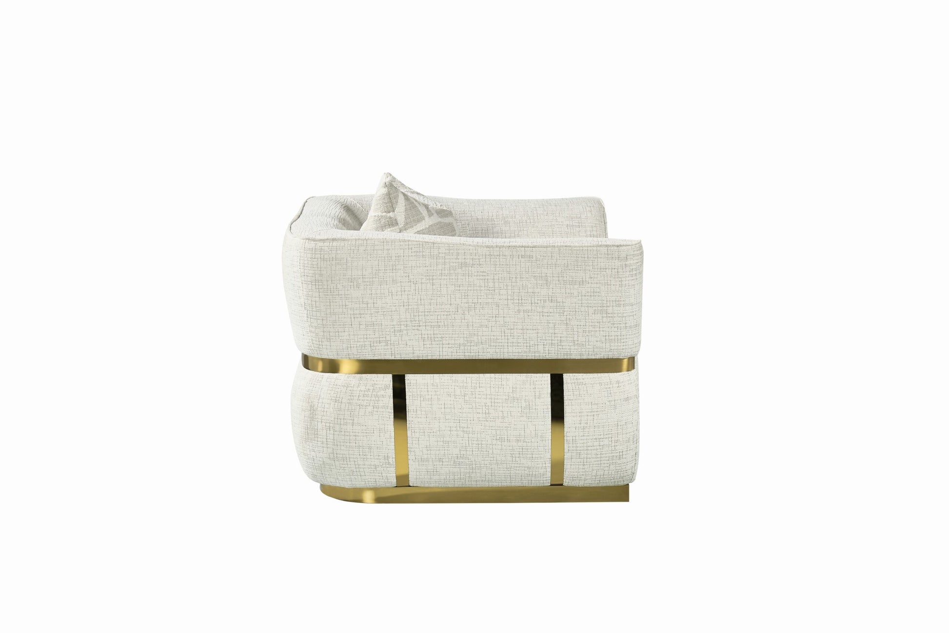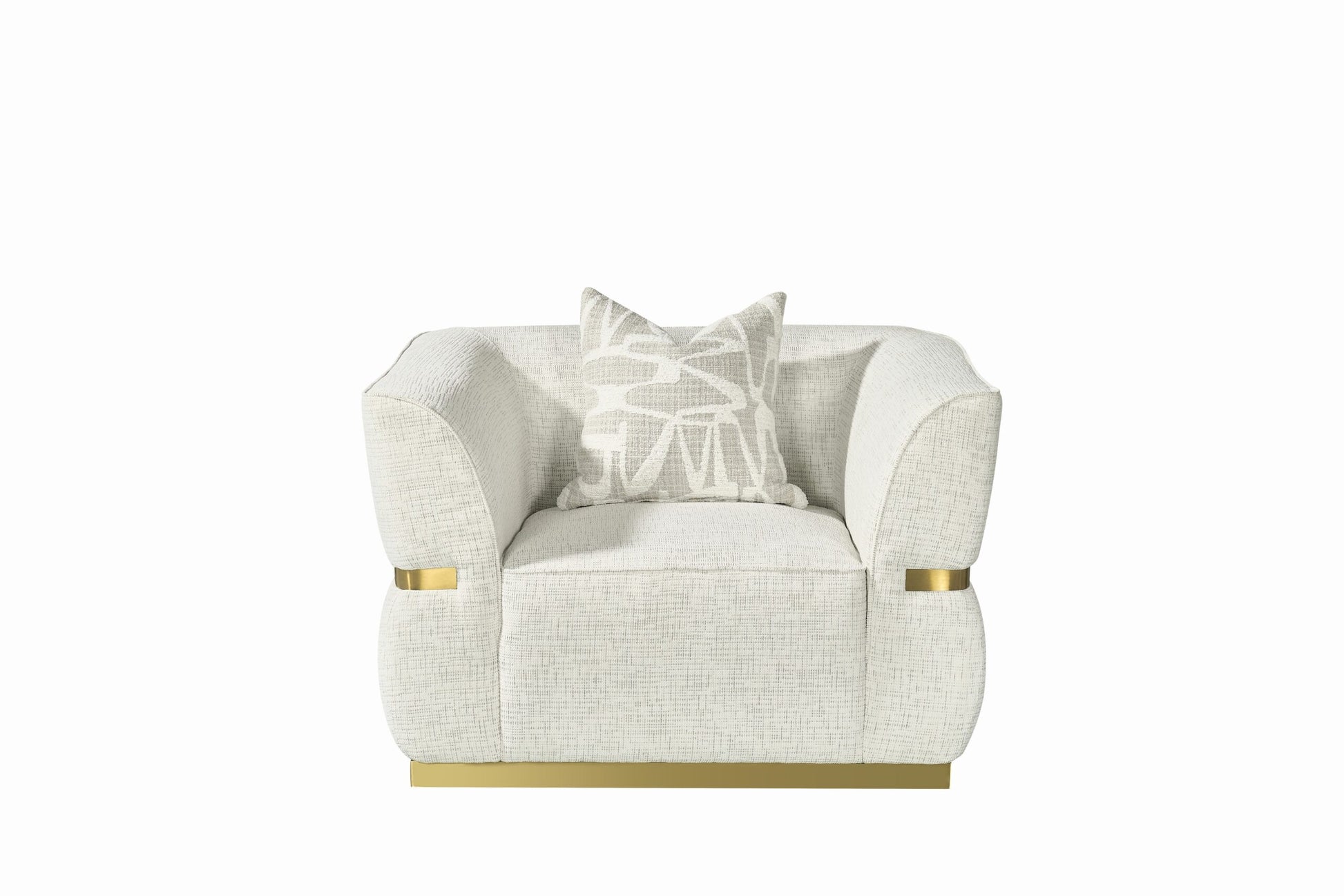 Its elegant proportions and gold banding make it ideal as an accent chair or as part of the full Soie suite — either way, it’s built to impress.