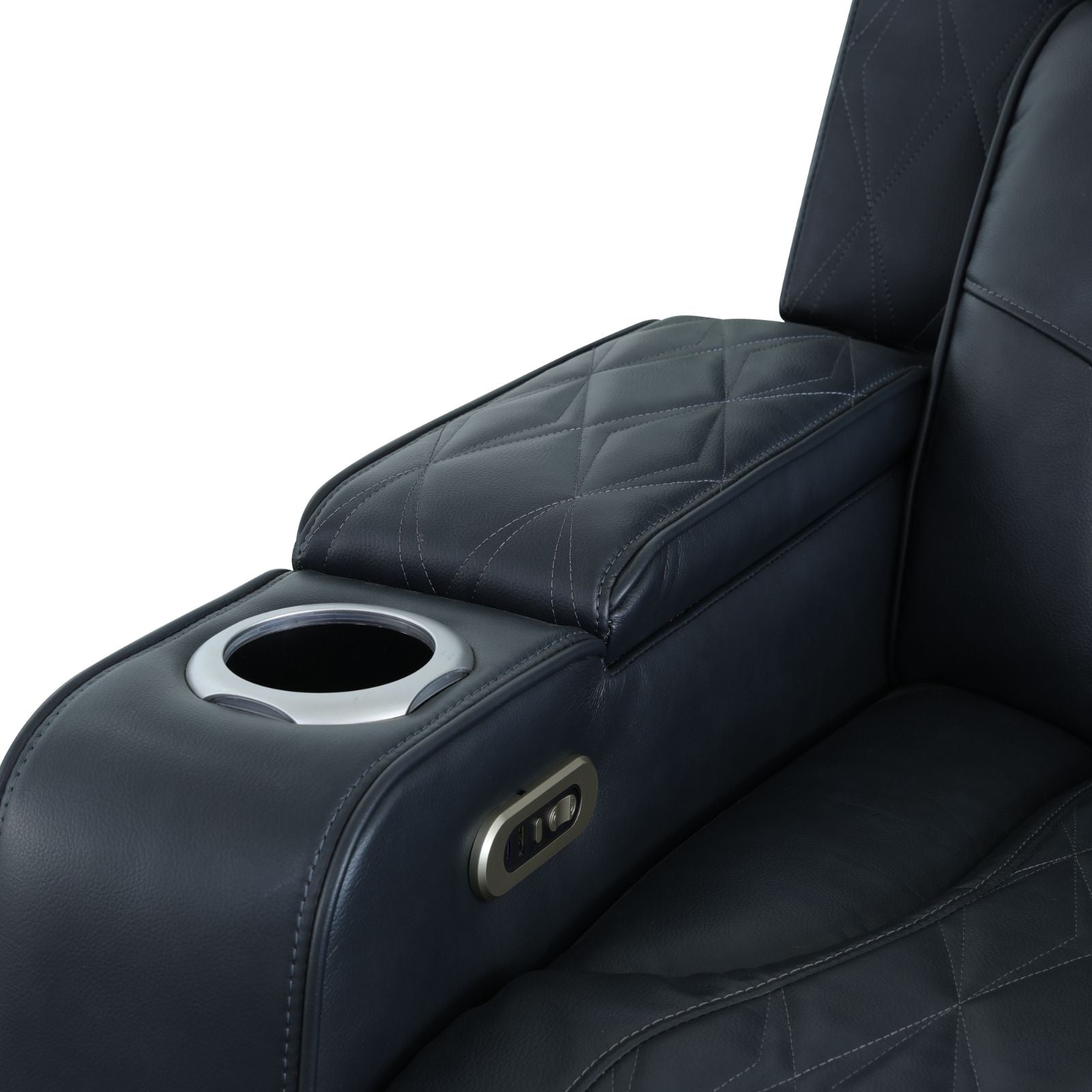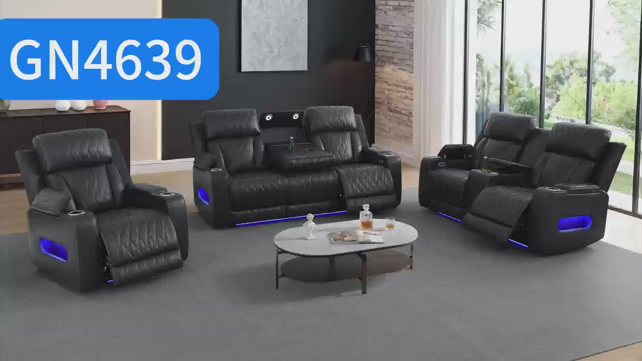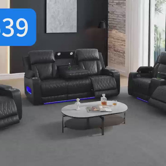 Blackish Gray Breathable Leather & PVC Intelligent Recliner Living Room 3 Pc Set