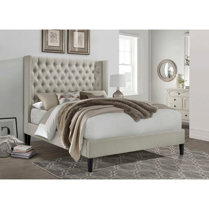 Wing Back Linen Upholstered Tufted Platform Bed with Nail Heads (Fully Slated - No Bunkie Board Needed) Bed Size: Full
