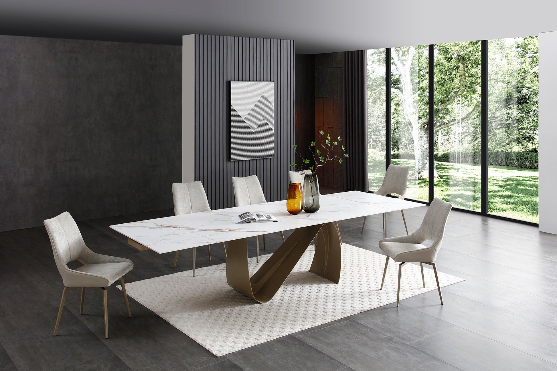 Elegant extended ceramic top (Kalalajin) Champagne-Bronze dining table.