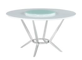 - 54-inch diameter table can seat up to 6 and comes with a removable white glass lazy susan (24-inch dia)