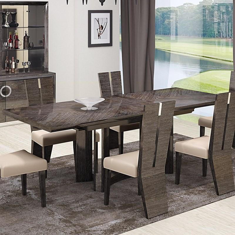 This gorgeous dining collection features a high gloss shine a parquet-style tabletop along with luxury faux leather upholstered chairs. This modern D59 Luxury dining table offers an elegant design to turn your dining area into the most eye catching spot of your house. The high gloss varnish smooth curves & surfaces add perfection to the rich wood character. This table is the perfect addition for any modern dining room space. The chairs come in a matching finish & are upholstered in a beige faux leather. Composed of MDF & Wood Veneer. Durable yet trendy this gray Glossy finish dining table set is definitely an ideal purchase for your modern lifestyle.