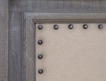 · Hand-applied nail-head trim on upholstered headboard panels.