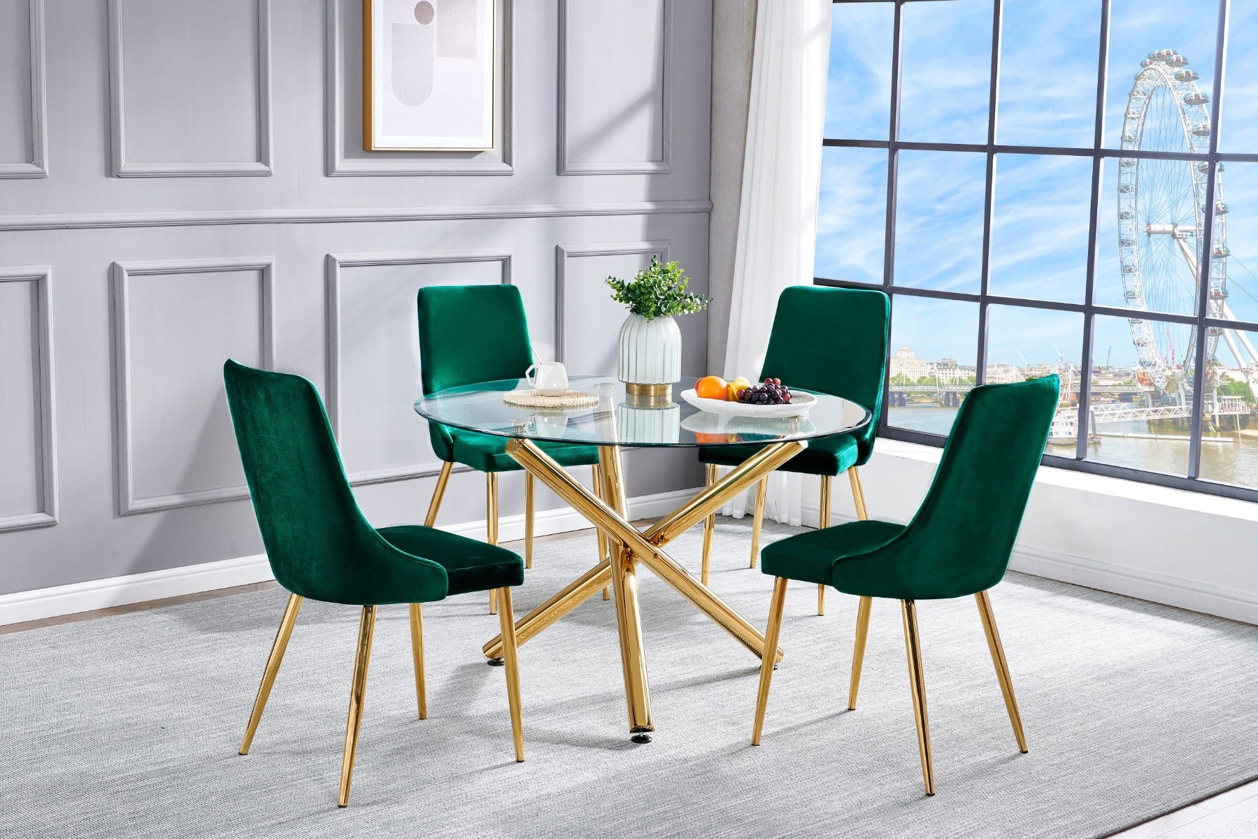 >> Chair: Emerald Green (color), Gold Chrome Legs