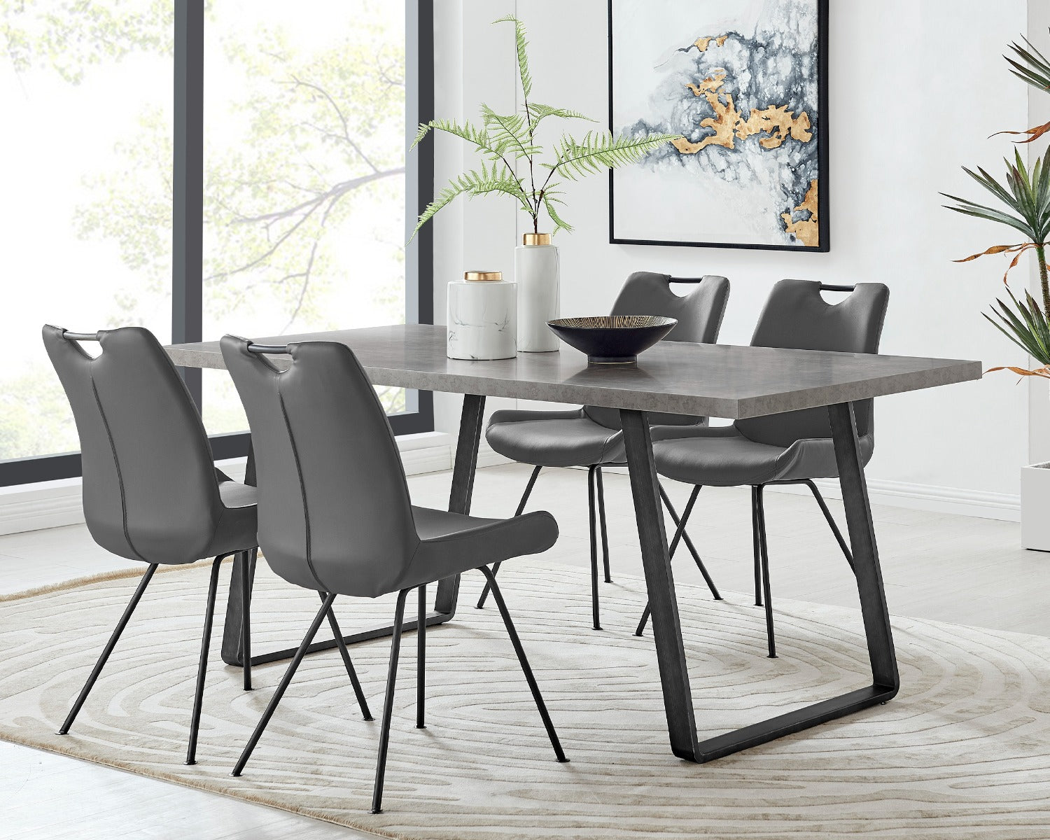 - Table Material: Metal Base, Grey Concrete Laminate Top