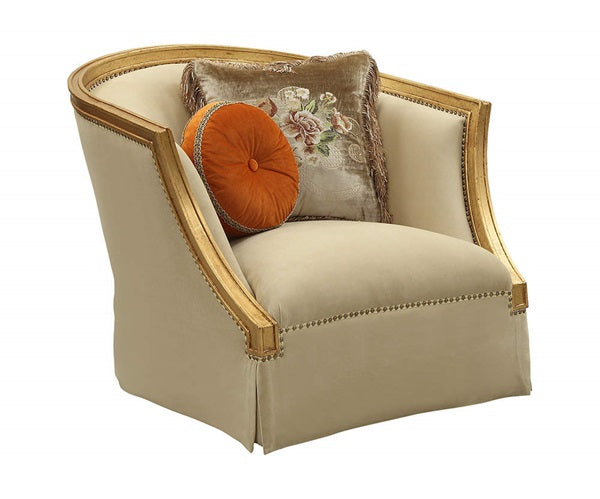 • Carved Curved Molding with Nailhead Trim: Antique Gold Finish, Poplar Wood (Backrest, Armrest)