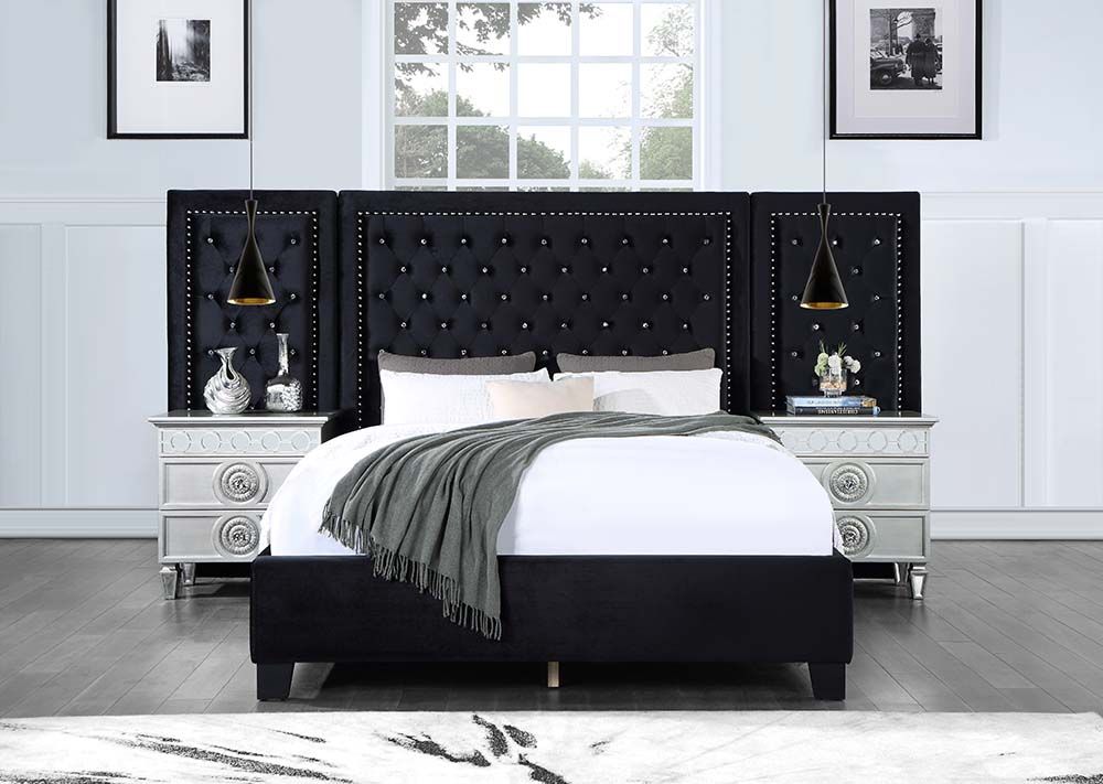 Damazy Velvet Bed by Acme - Black or Blue