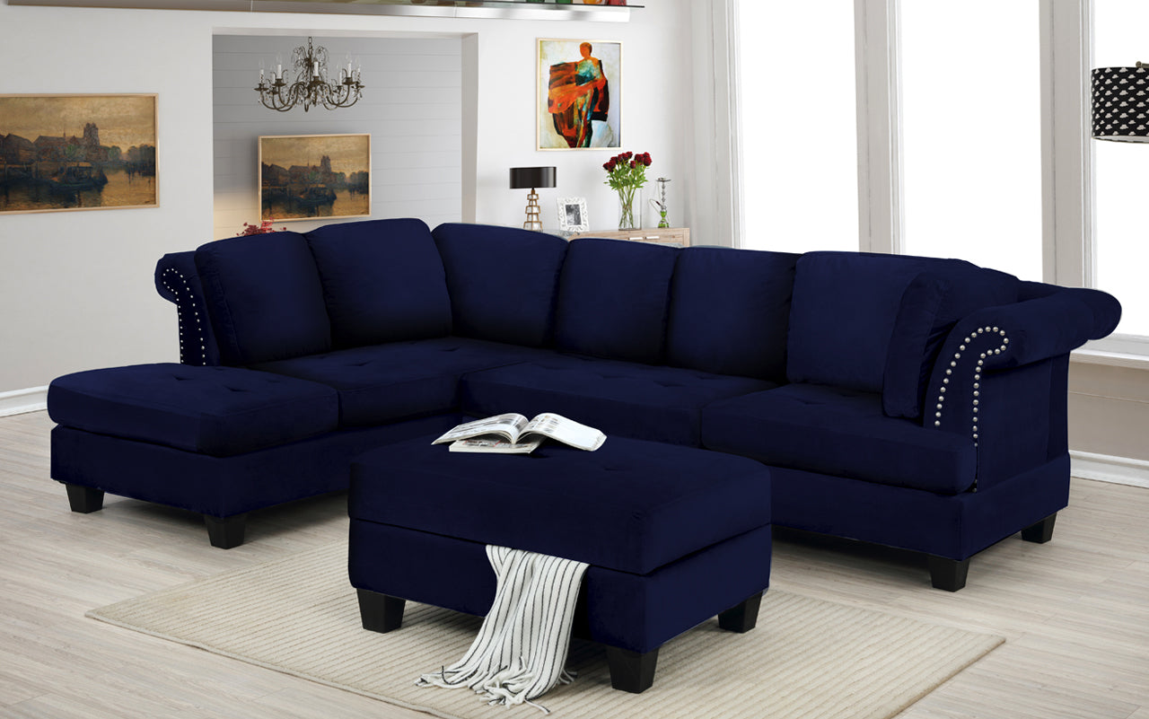 Derby Reversible Sectiona Only - Navy Velvet (no ottoman)