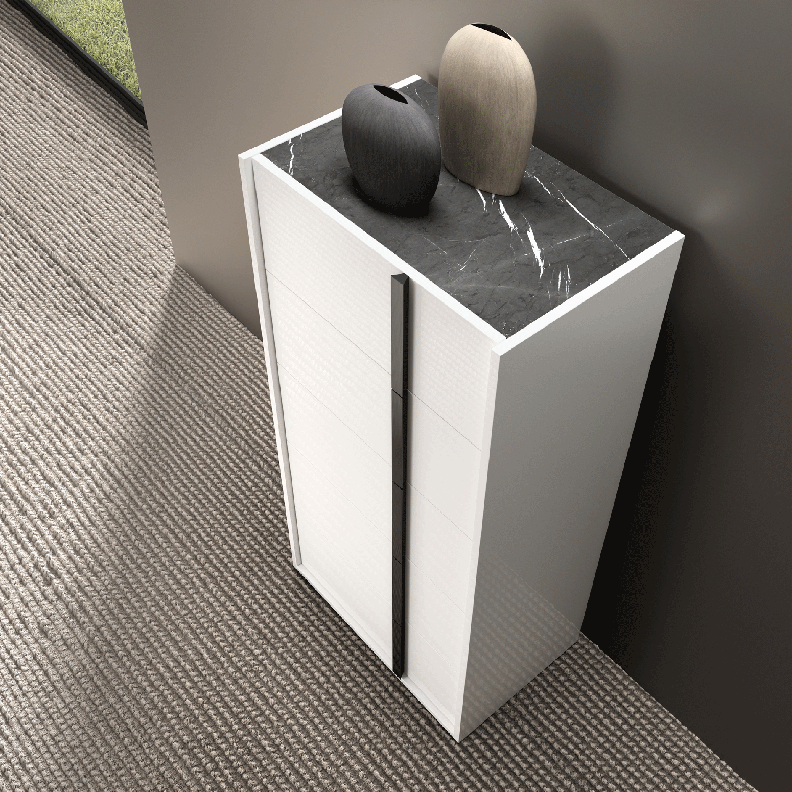 The Bianca Marble Bedroom collection effortlessly combines timeless elegance with modern appeal. Featuring sleek glass tops with a digitally-printed Dark Grey Marble finish, this collection brings together different materials to create a sophisticated and stylish bedroom. Indulge in a haven of luxury and sophistication with the Bianca Marble Bedroom collection, a perfect blend of elegance and refinement.
