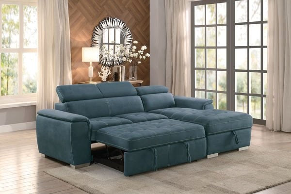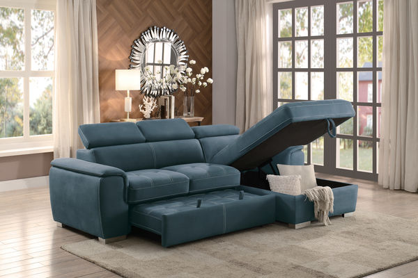 Blue Sectional with Pull-out Bed & Hidden Storage (98 x 65.5 x 39H) - $1,079