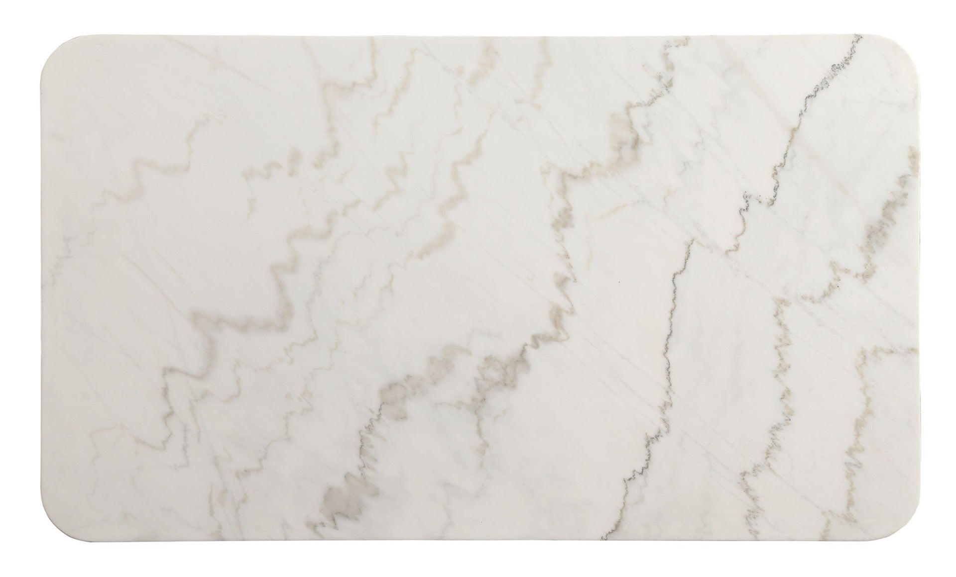 Spacious seating accented with a jaw-dropping white marble table top & a wooden tapered base, the Gasha dining set will be the showstopper to any dining area. To add more comfort the side chairs are upholstered in a beige linen fabric. Add the matching server to complete the look.