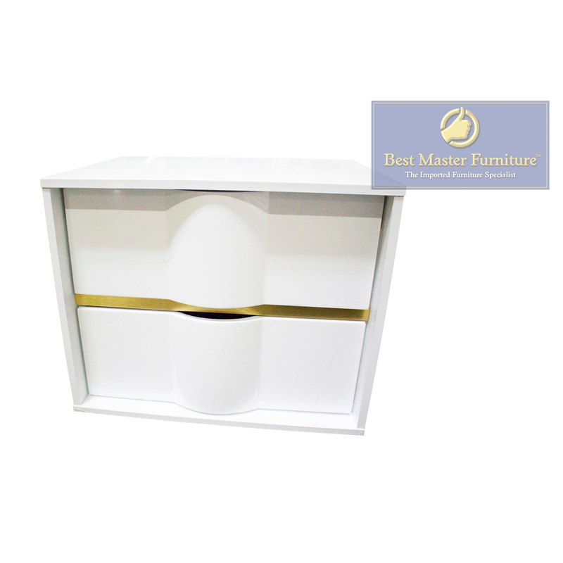 This Havana modern bed set is simple and elegant. The clean white finishes & gold trim give this bedroom a futuristic feel.