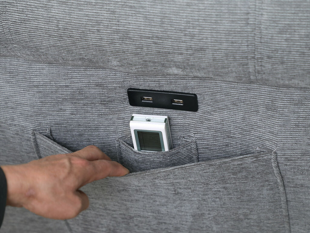 Hugo 97"W Light Gray Chenille Reversible Sleeper Sectional Sofa Chaise with USB Chargers, Phone/Magazine Pockets