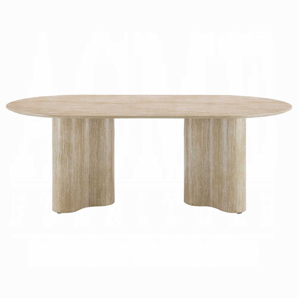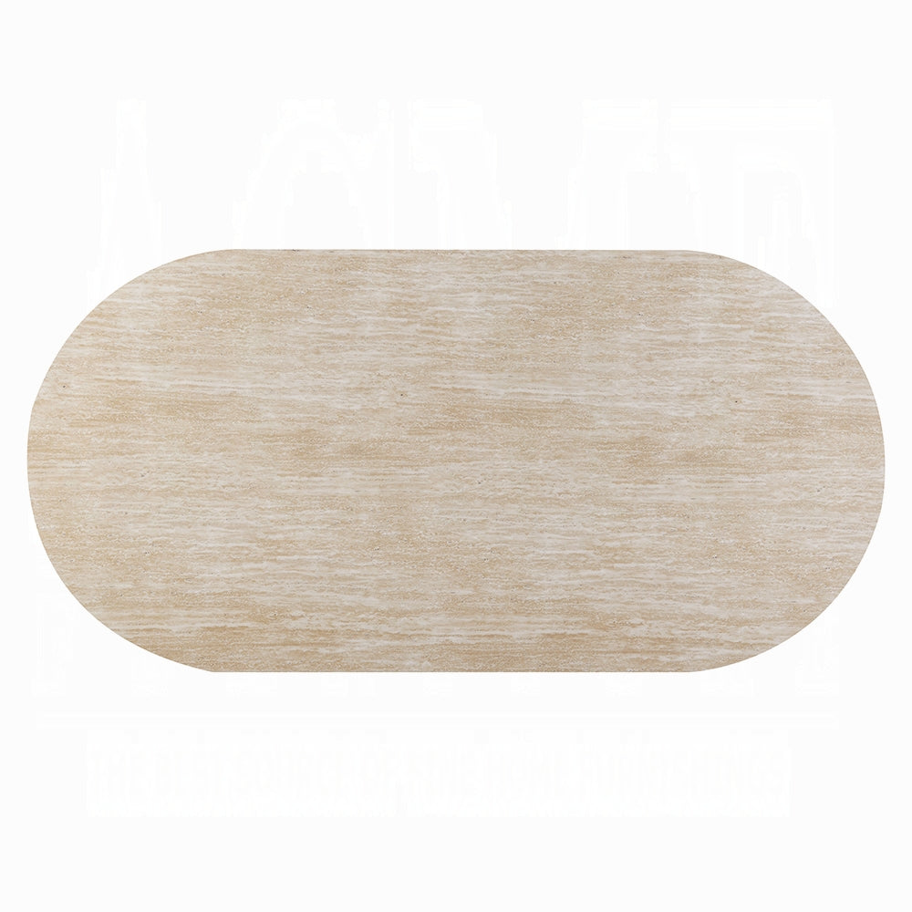 - Material: Composite Wood With Travertine Pattern Paper, Metal, Fabric, Foam