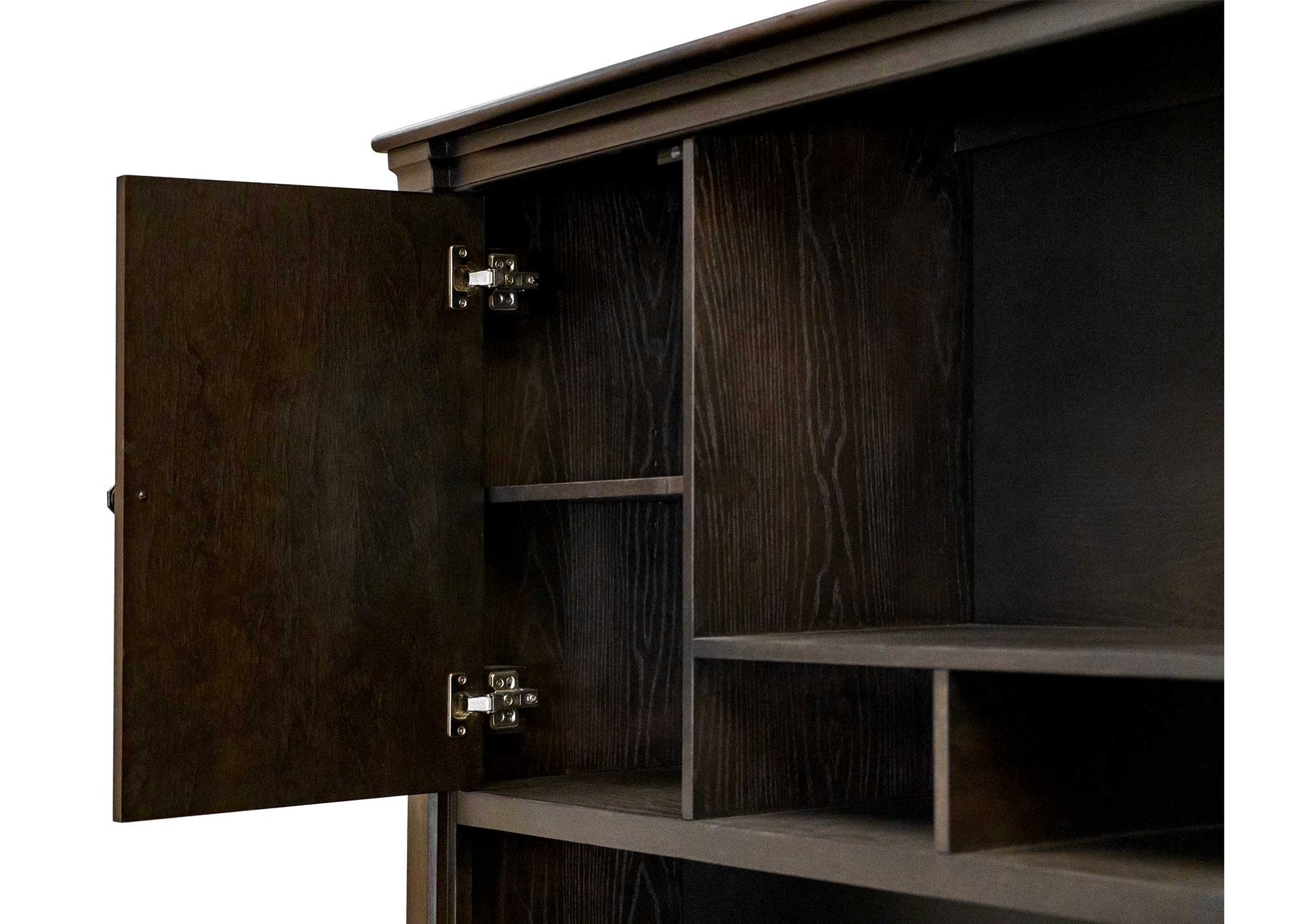 Two adjustable shelves behind doors to customize to your binder & documents needs