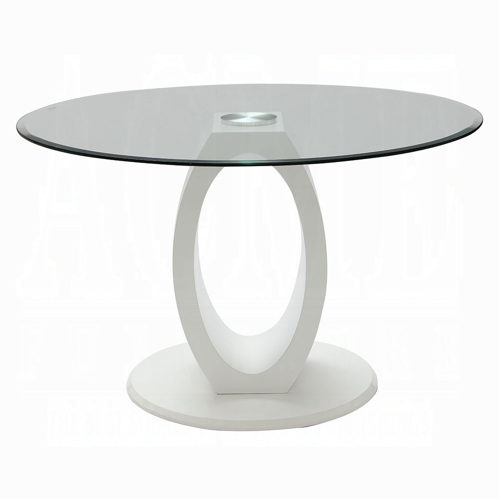 The Larry collection dining set combines a polished glass surface with a bold white high-gloss finish, adding a refined modern touch to your dining area. The tempered glass top offers both strength and safety, while the sleek design serves as an eye-catching centerpiece. Complemented by elegant chairs, this set is ideal for both cozy meals and vibrant social occasions, elevating every dining experience with sophistication.