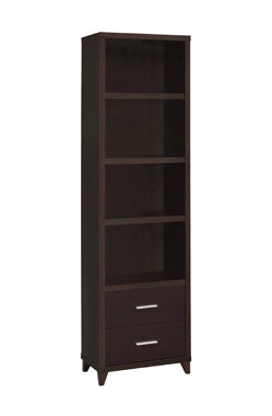 Revamp your living room with this cappuccino entertainment wall. A combination of 4 pieces - including one TV console, two media towers, & one bridge - provides 16 shelves to hold all your media & decoration. Additionally, five drawers enable you to better organize your space. All while maintaining a clean and modern look, this multi-piece wall is perfect for any style of living room..