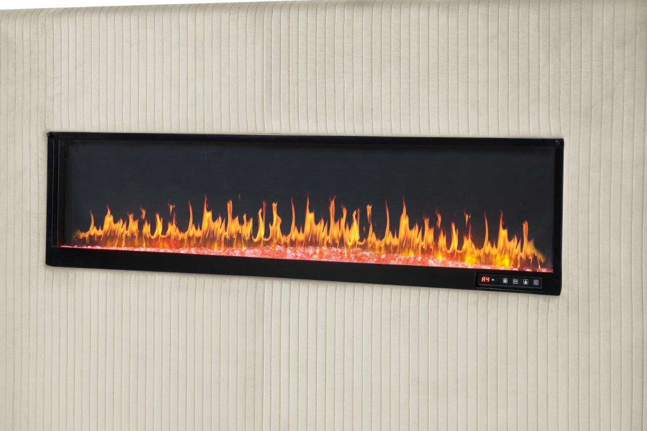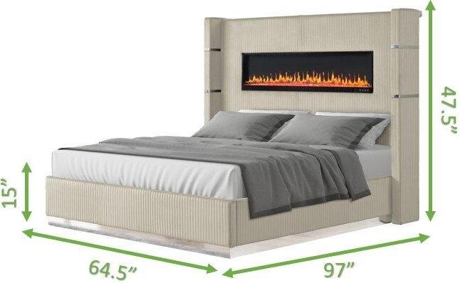 Unlock the full potential of modern furniture with our exclusive bed, expertly combining fashion, functionality, and relaxation. The headboard showcases a captivating no-heat fireplace exhibit in six striking hues, elevating the overall atmosphere of the room. Equipped with USB and Bluetooth speakers for added convenience and exceptional audio quality, this bed boasts a velvet-padded footboard, side rails, and a tall headboard for a lavish experience. Choose from a range of colors including Grey, Blue, Beige, and Black, making this revolutionary bed collection a truly unique and unparalleled masterpiece.