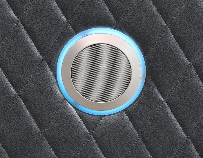 - IMMERSIVE SOUND SYSTEM: Built-in speakers on both sides of the seating provide all-encompassing sound for a theater-like experience. Easily control bass, treble, and volume. Connect wirelessly with bluetooth or with an optical cord.