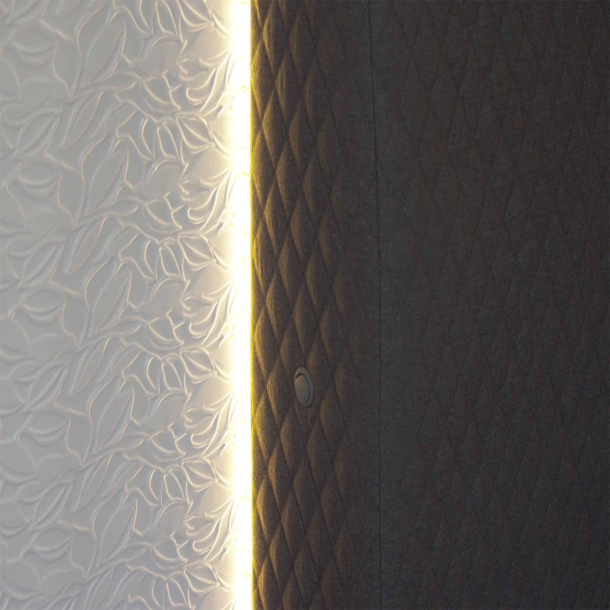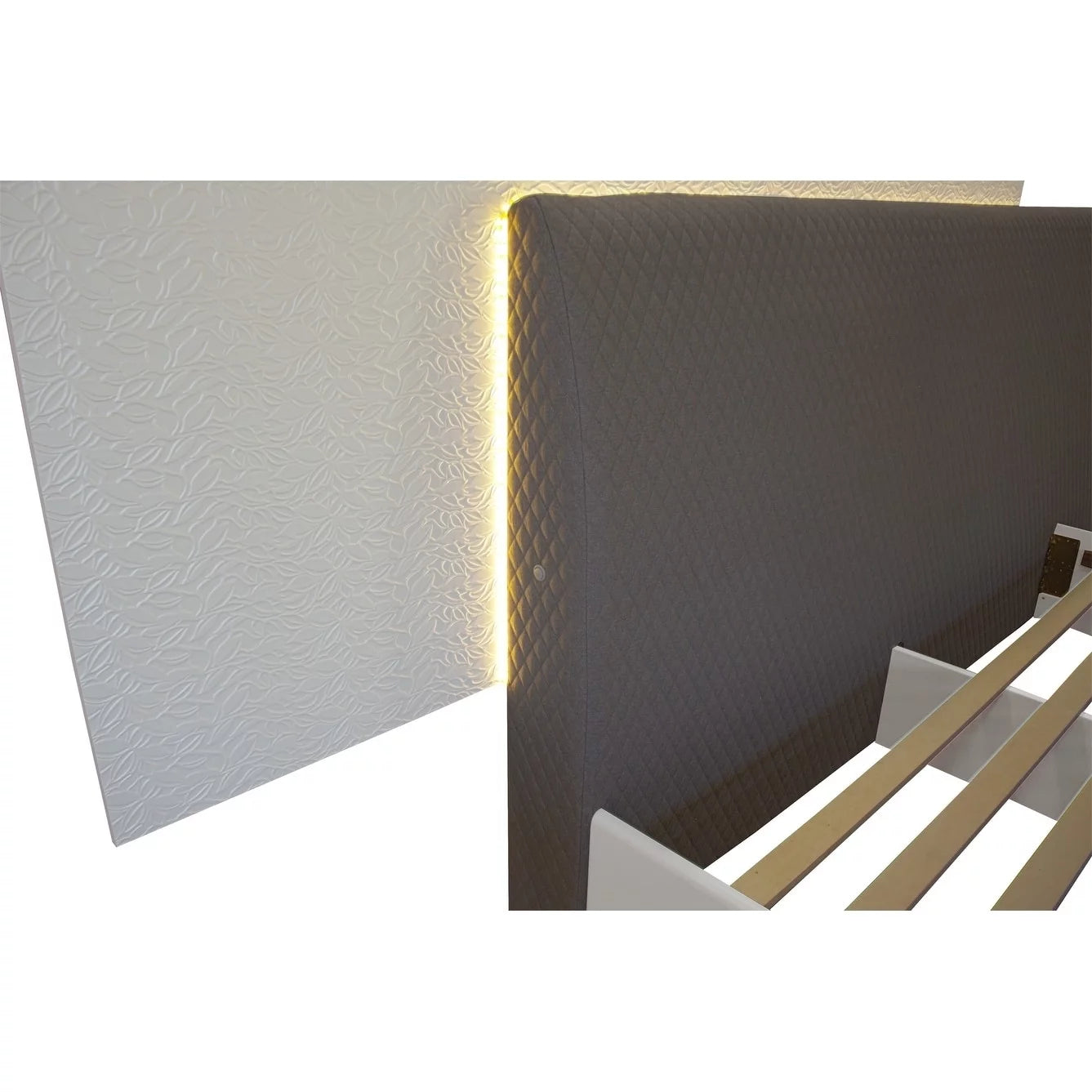 This is a gorgeous Naple modern bedroom set with LED lighting within the head board. It's 2 tone on the dresser & night stand give it a futuristic feel.