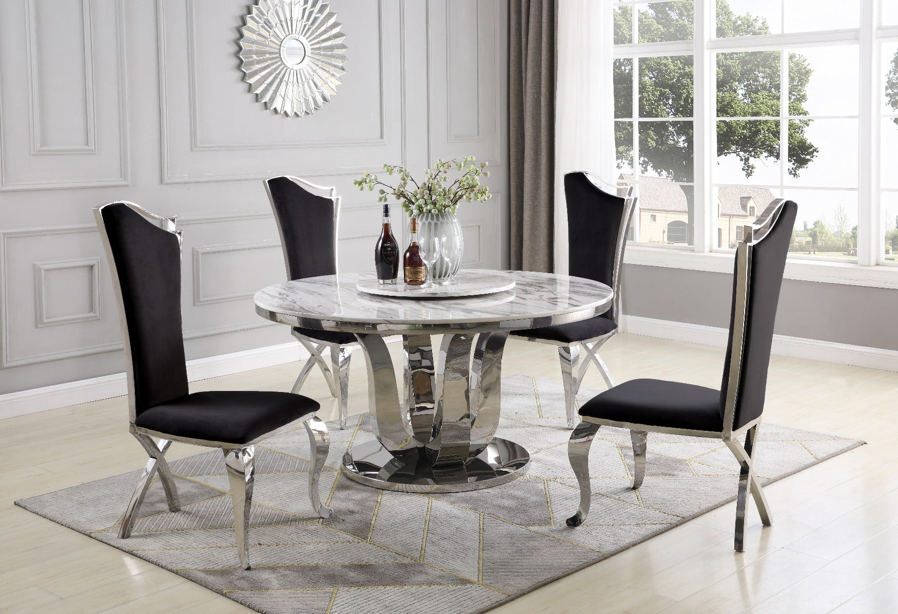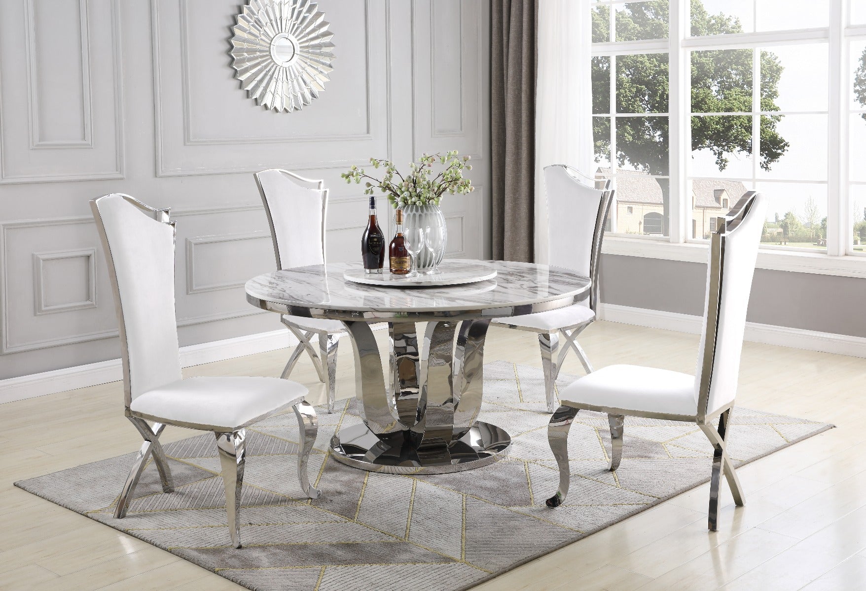Olympus 5 Pc Round Marble Dining Collection w/Lazy Susan