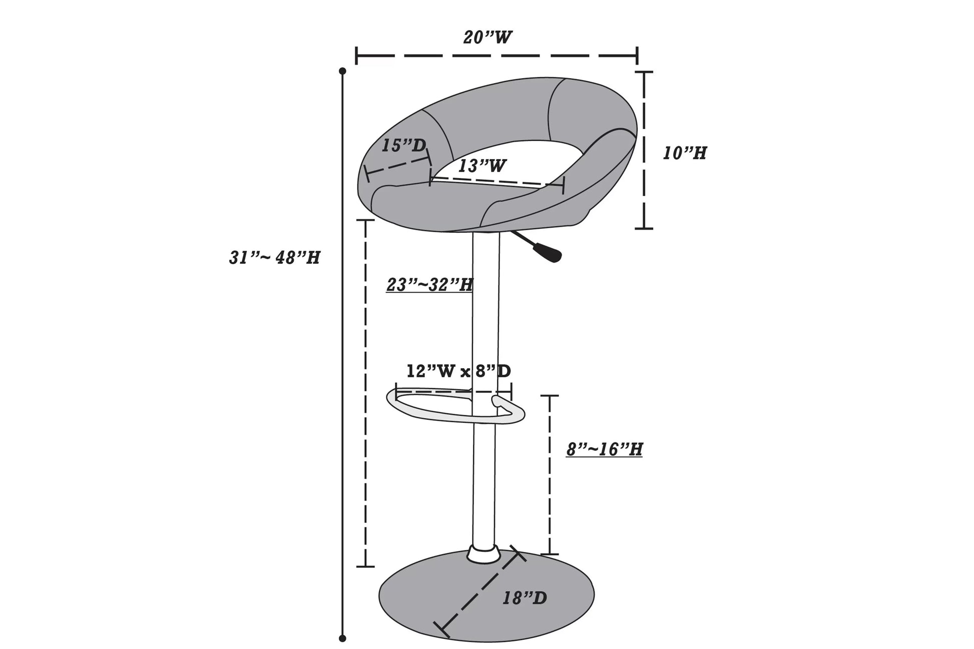 Transform your seating with this contemporary barstool that seamlessly blends style and practicality. Standing 20 inches wide by 18 inches deep, it features an adjustable height mechanism that ranges from 31 to 39 inches, with seat heights between 24 to 32 inches—perfect for any counter or bar configuration. The faux leather upholstery delivers a sophisticated look while the open-back design keeps sightlines clean and uncluttered. Armless construction maximizes legroom and encourages natural movement, while the 360-degree swivel lets you rotate effortlessly to socialize or grab what you need. A smooth gas lift system with an easy-access handle puts height adjustment at your fingertips, and the sturdy round pedestal base with integrated footrest ensures stability and comfort through hours of use. Whether you're creating a casual gathering spot or upgrading your kitchen island, this modern barstool delivers the versatility and refined aesthetic your space deserves.