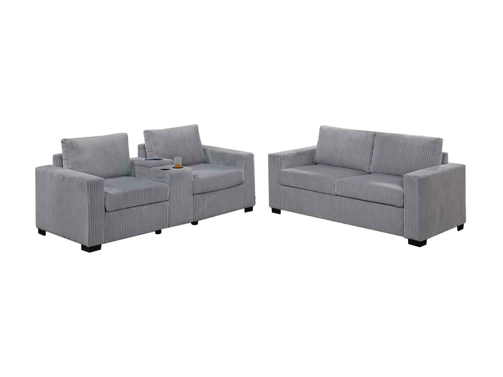 Poundex F8460 Light Gray Sofa Set