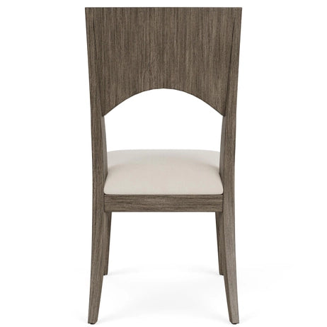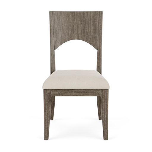 - Wide back splat with arched bottom and vertical veneer adds the the modern styling of the group