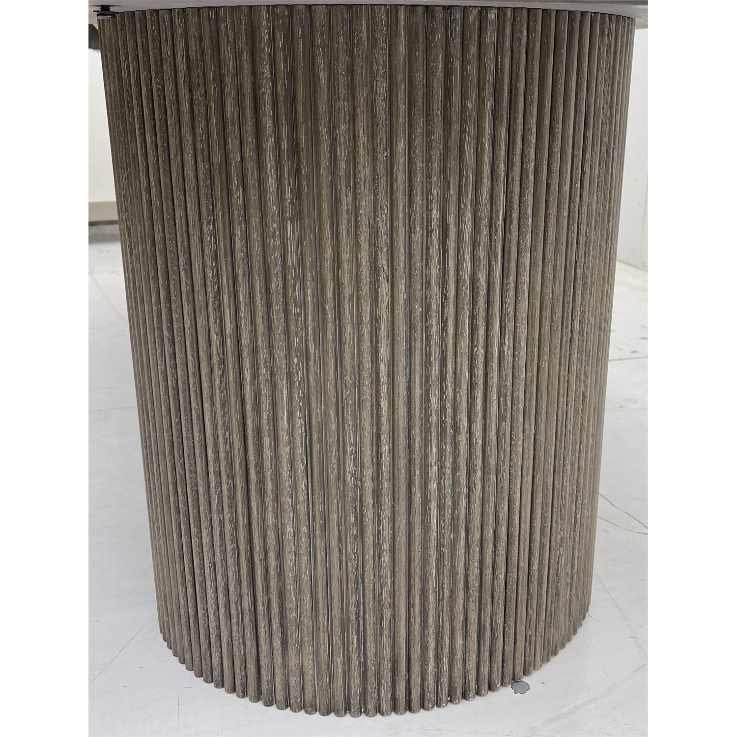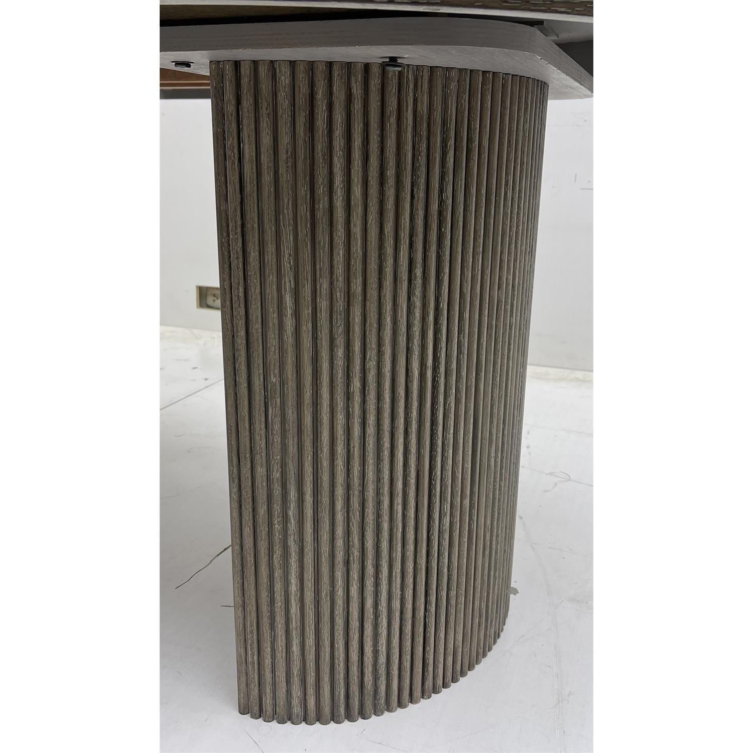 - Double demi-lune pedestals with vertical reeding adds modern styling of the group