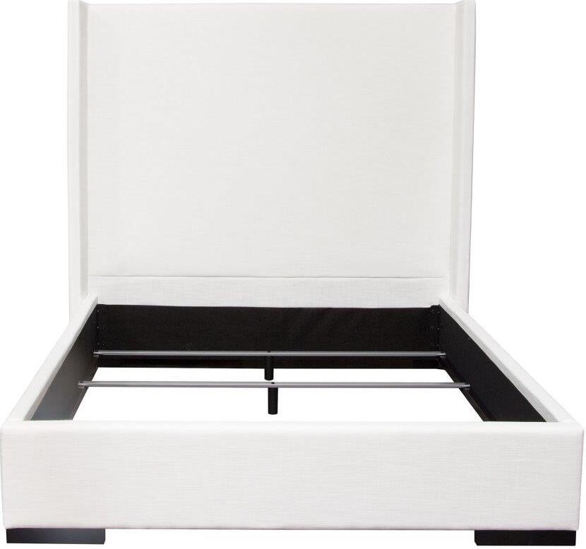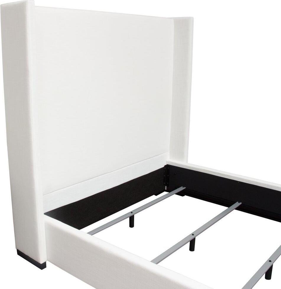 The Seattle Bed from Diamond Sofa is expertly constructed to 69 inches in height & features a 12 inch frame with four reinforced slats for stability. It offers a sleek panel headboard with vintage wing accents, as well as wood feet in a luxurious walnut finish, creating a timeless look for any bedroom. The charcoal White Linen finish completes the look. The bed is available in Queen and Eastern King sizes, & requires a foundation or box spring.