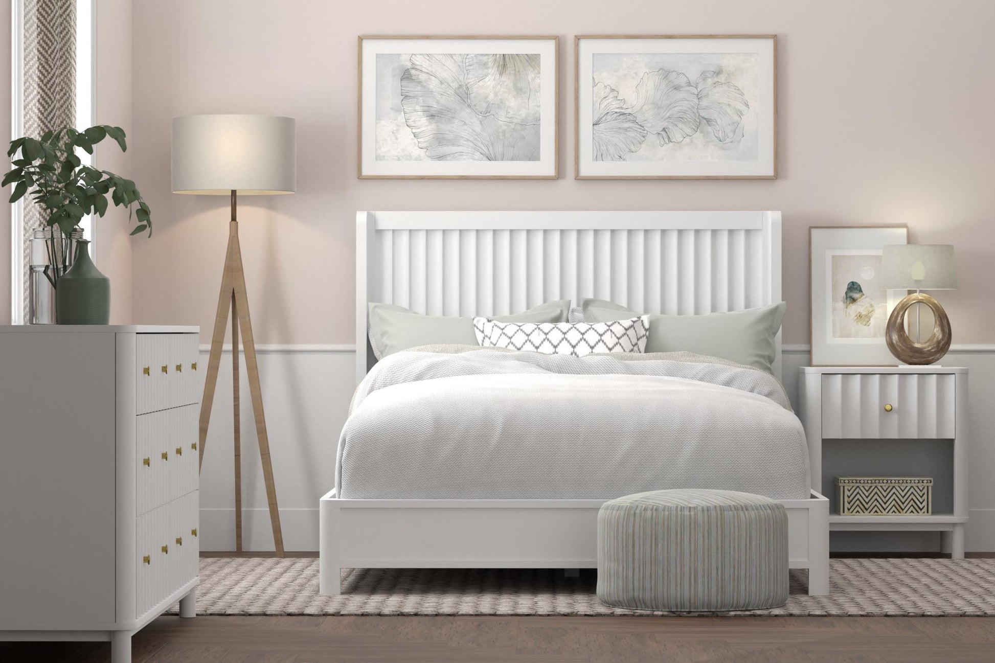 The scalloped panel detail is the main headboard feature, complimented by the continuous use of curved edges.