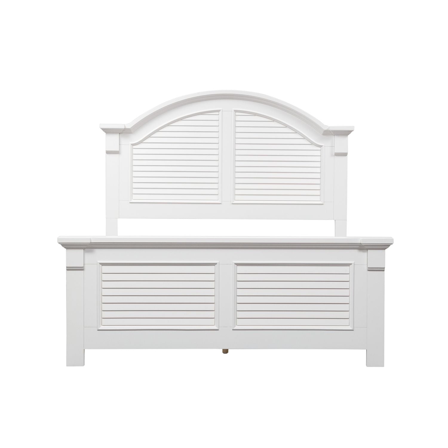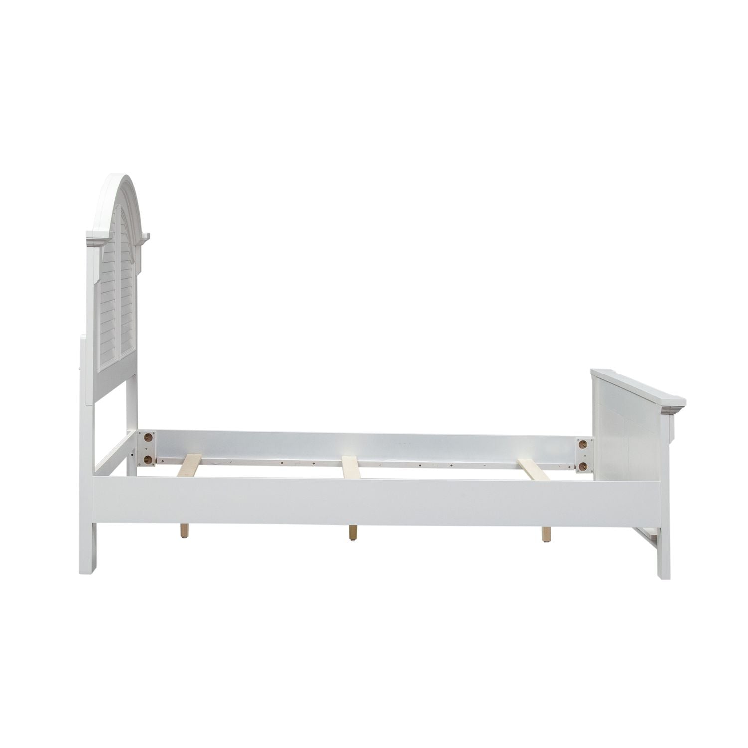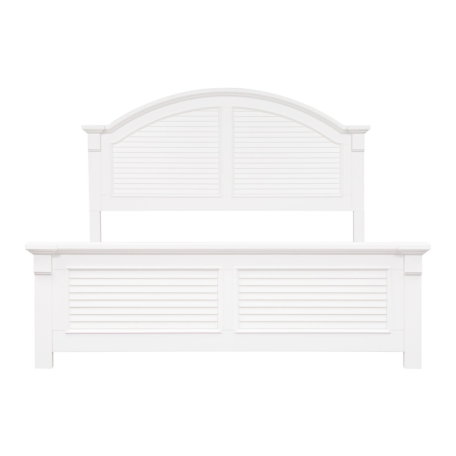 Add elegance to your home with the Summer House I queen panel bedroom set, which includes a bed, dresser, mirror, and nightstand. Made with durable poplar and pine solids, this set features a charming oyster white finish, bead molding, bun feet, and full extension drawers with felt lining in the top drawers. The panel bed boasts louvered panels and arched crown molding, while the dresser has two louvered panels doors and five drawers, including two convenient flip-down top drawers. Easy to assemble, the arched louvered panel mirror features a beveled edge and bolt-on supports. The unique nightstand offers ample storage with its felt-lined top drawer and adjustable shelf behind the louvered panel doors. With its timeless cottage design, the Summer House I will be a staple in your home decor.
