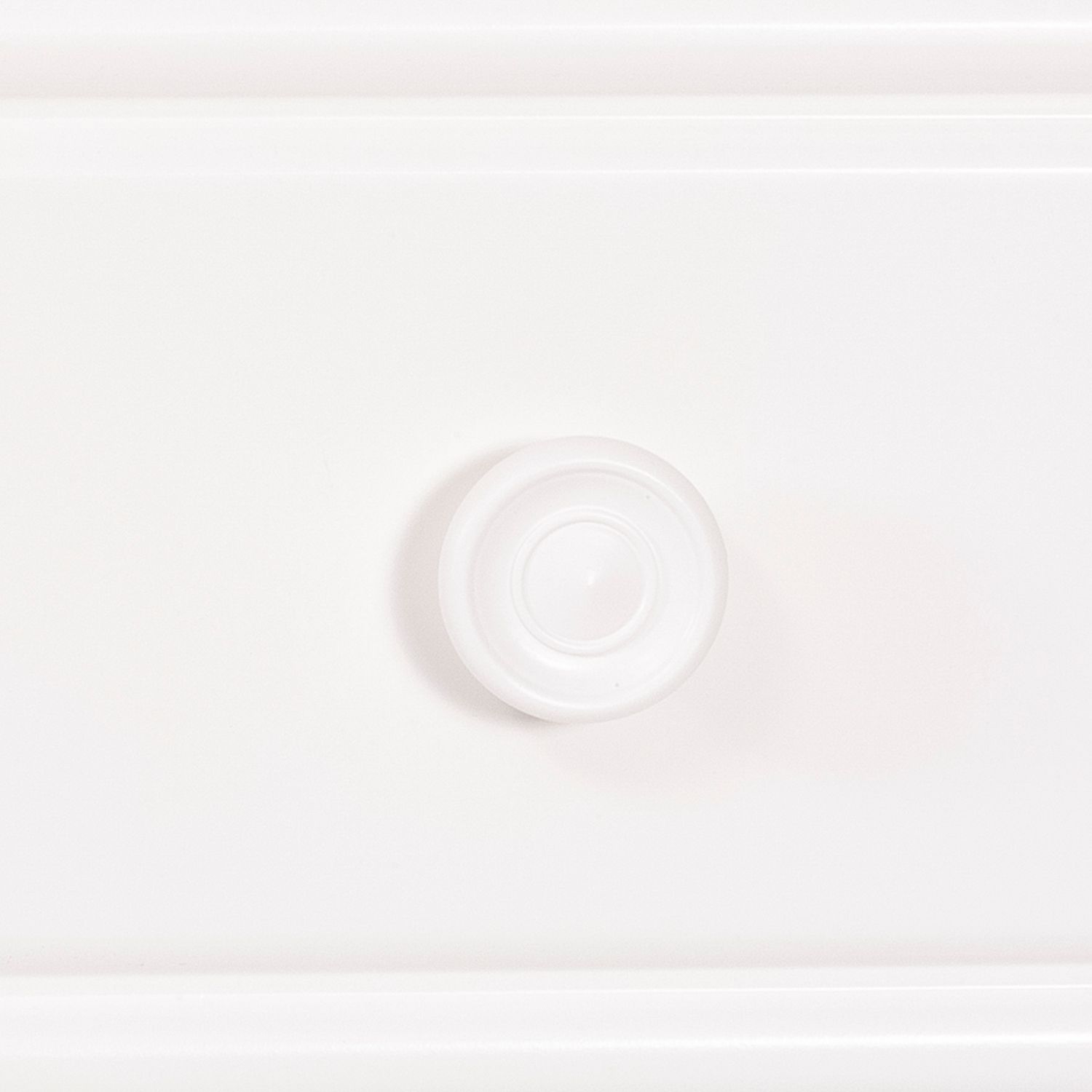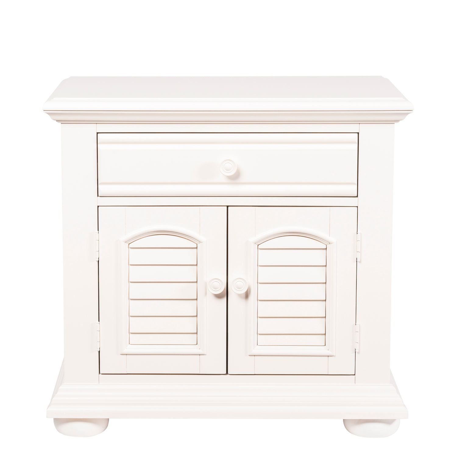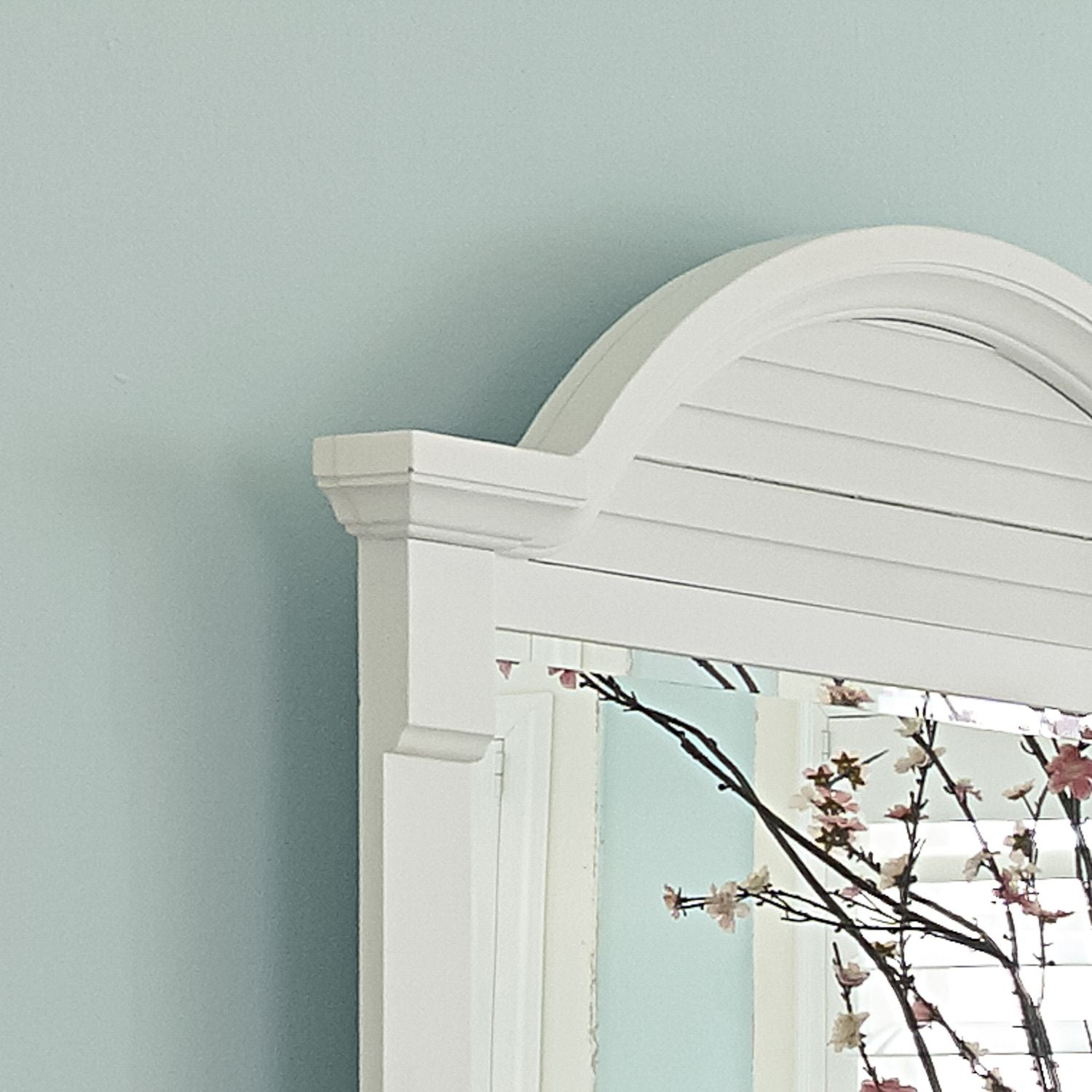 Add elegance to your home with the Summer House I queen panel bedroom set, which includes a bed, dresser, mirror, and nightstand. Made with durable poplar and pine solids, this set features a charming oyster white finish, bead molding, bun feet, and full extension drawers with felt lining in the top drawers. The panel bed boasts louvered panels and arched crown molding, while the dresser has two louvered panels doors and five drawers, including two convenient flip-down top drawers. Easy to assemble, the arched louvered panel mirror features a beveled edge and bolt-on supports. The unique nightstand offers ample storage with its felt-lined top drawer and adjustable shelf behind the louvered panel doors. With its timeless cottage design, the Summer House I will be a staple in your home decor.