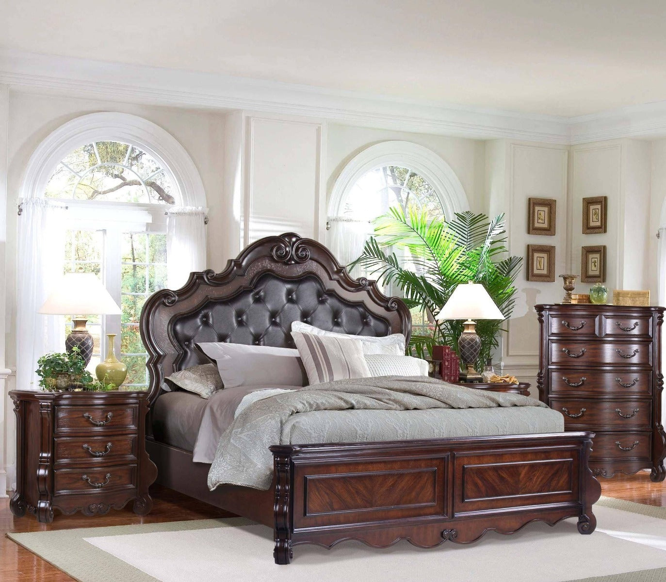 Inspired by European Old World Design, this extensively designed & accented bed will make a stunning showpiece to your traditional master bedroom. Made from hardwood solids along with cherry veneers, the set features a cherry finish that brings out the warmth of traditional style. Each sophisticated piece in this regal King bedroom set from this stunning collection oozes traditional class & remarkable functionality.