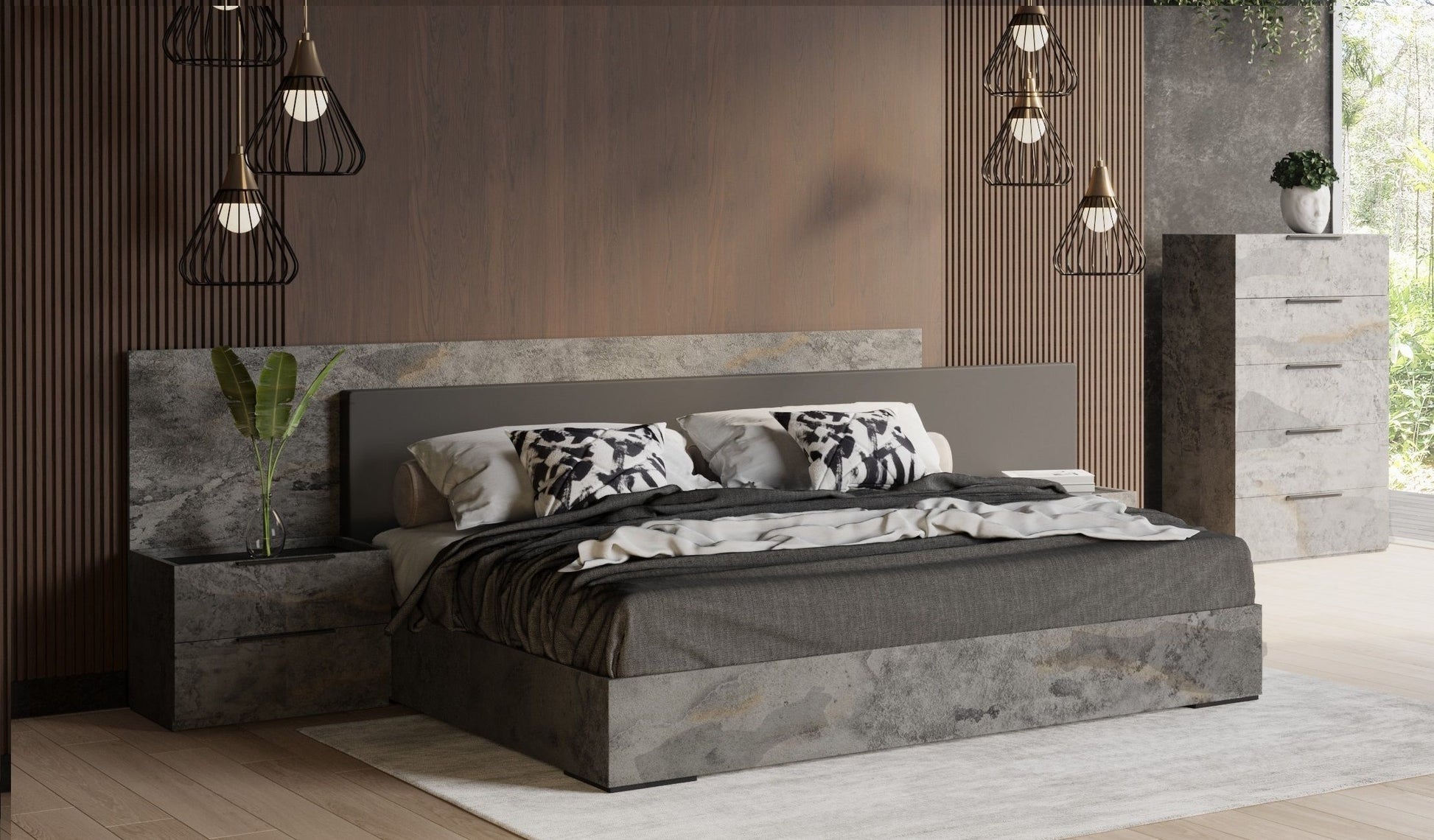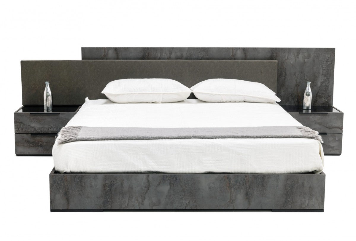 VIG Nova Domus Ferrara - Modern Volcano Oxide Grey Bed + Nightstands