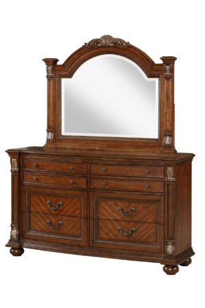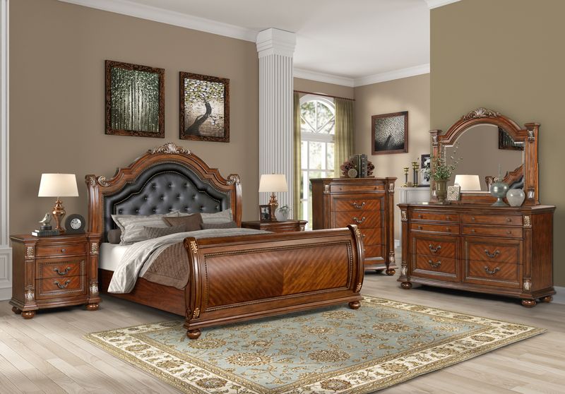 Experience the timeless elegance of our Viviana Bedroom Collection. Paying homage to classic charm and enduring design, the collection features a rich cherry finish and impeccable craftsmanship, exuding sophistication and creating a warm, inviting ambiance. Combining classic allure with the opulence of cherry wood, this ensemble is more than just furniture - it is a celebration of enduring design, offering a luxurious haven where comfort and timeless style intersect. With its warm hues and intricate design, the Viviana Bedroom Collection sets the stage for a refined living space, reflecting tales of comfort and timeless style.