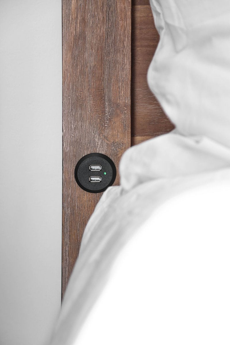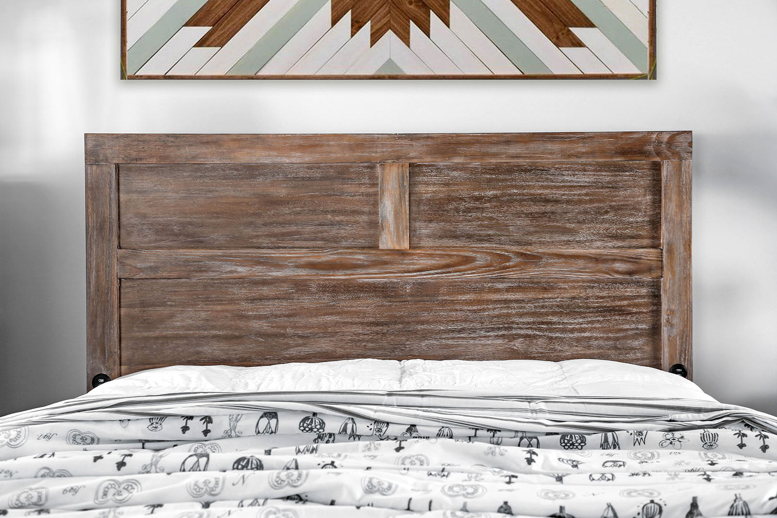 This beautiful set displays a stunning wood grain & light oak finish, reminiscent of reclaimed wood designs. Dual USB ports are built into each side of the headboard, harmoniously combining rustic charm & modern amenities. The hardware of the drawers and case goods accentuates the minimalist style. Transform your space with a naturally rustic atmosphere.