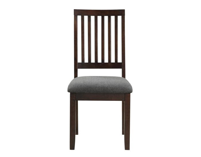 The Yorktown 7 Pc Dining Set adds elegance to your dining space. Combining mid-century modern design with transitional elements, this set boasts a sleek espresso finish over mindi veneers. Featuring a 60" long table and sturdy wooden chairs upholstered in a chic gray tweed, this set provides both style and comfort. The chairs also have vertical slat backs and tapered legs, perfectly complementing the design of the table.